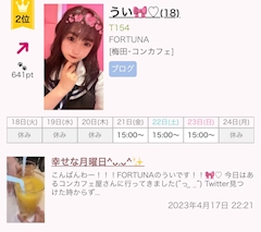 初めましての方は初めまして!久しぶりの方はお久しぶりです🐾💝 FORTUNAのういです🎀♡ 学業が忙しくて久しく出勤できず…昨日久しぶりに出勤しましたᐡඉ́ ̫ ඉ̀ᐡ出勤してないうちにポケパラページきえちゃったので作り直しました🥹🥹 だいぶ昔だけどこの時の写真お気に入りで同じの登録しようとしたけど画像見つからなくて新しいのにしました🥲 てかこの時多分関西コンカフェランキング2位だった時だー!笑ブログ頑張ってた時期は毎日ランキングをメモして目に見える形にしてモチベーションあげてたからその時のメモがまだ残ってるの笑全国コンカフェランキングも50位までは頑張ってあげてたなー。それも思い出! ポケパラ作り直したし久しぶりに出勤もできたし1からまた頑張るぞー!!!の気持ちです意気込んでる❤️🔥❤️🔥 もちろん学業優先したいのでなかなか思うように出勤できないだろうしブログも前みたいに毎日は書けないかもしれないけど…できることをできる時に精一杯!!とても頑張ります、だから見てて( т_т )💘 昨日のお礼はまた別のブログに書きます! ブログってこんなだったかな…?笑読んでて楽しいブログ書けるようにがんばる今回はとりあえずここまででᝰ✍🏻 お目通し頂きありがとうございました!🎶 以上ういぽでした♡ またね🌟 ୨୧┈┈┈┈┈┈┈┈┈┈┈┈┈┈┈┈┈┈୨୧ ♡ういのSNS♡ Twitter https://twitter.com/uir_fortuna Instagram https://instagram.com/uir_fortuna TikTok https://www.tiktok.com/@uir_0218 ୨୧┈┈┈┈┈┈┈┈┈┈┈┈┈┈┈┈┈┈୨୧ ♡FORTUNAのSNS♡ Twitter https://twitter.com/fortuna_umeda Instagram https://instagram.com/fortuna.umeda TikTok https://www.tiktok.com/@fortuna0416 ୨୧┈┈┈┈┈┈┈┈┈┈┈┈┈┈┈┈┈┈୨୧ FORTUNA 【住所】 大阪府大阪市北区小松原町1-2ラシーヌ曽根崎ビル 10F 【営業時間】 15:00~23:00 06-4301-4882 080-4719-0942(24時間OK) ୨୧┈┈┈┈┈┈┈┈┈┈┈┈┈┈┈┈┈┈୨୧ いつもいいね、spいいねありがとうございます‼️ 必ずお返しします~🫶🏻🎀
