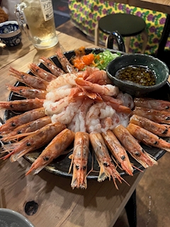 254回目のひかるです🌱 明日ハロウィンだけど全然いつもと同じ感じのブログあげちゃう( ˙꒳˙ )v この前職場の友達とご飯行ってきたのー! 海老しゃぶ!!!!! 友達が予約してくれたんだけど天才すぎた🦐 そのまま食べてもめちゃくちゃ美味しいし、特性のタレが旨辛でタレ付けても美味しかった!!! こんなに海老たくさん食べれて幸せでした(*˘︶˘*).。.:*♡ 2軒目に焼き鳥の店も予約してくれてたんだけど、海老でおなかいっぱいなっちゃって笑 鳥刺しとお造りあったから少し食べました! 鶏ユッケ〜🎶 美味しいご飯と酒は良いですな(*´˘`*) 色んな話出来て楽しかった!!! またね🌱